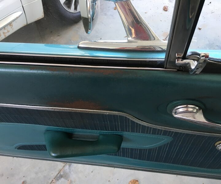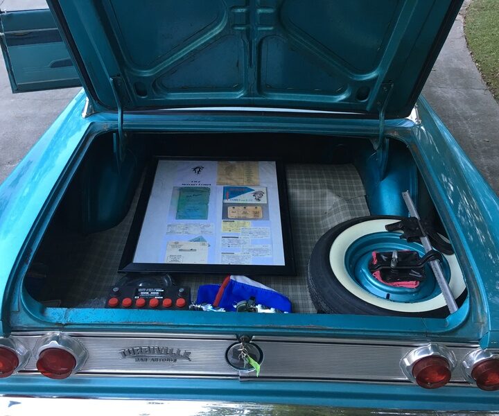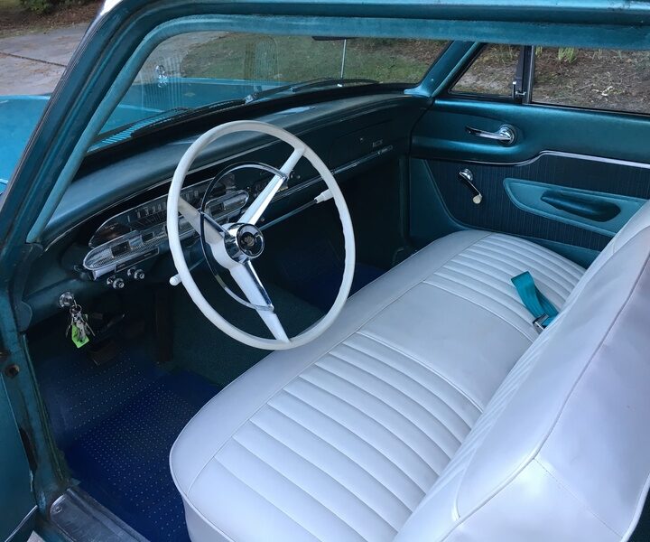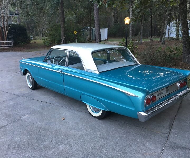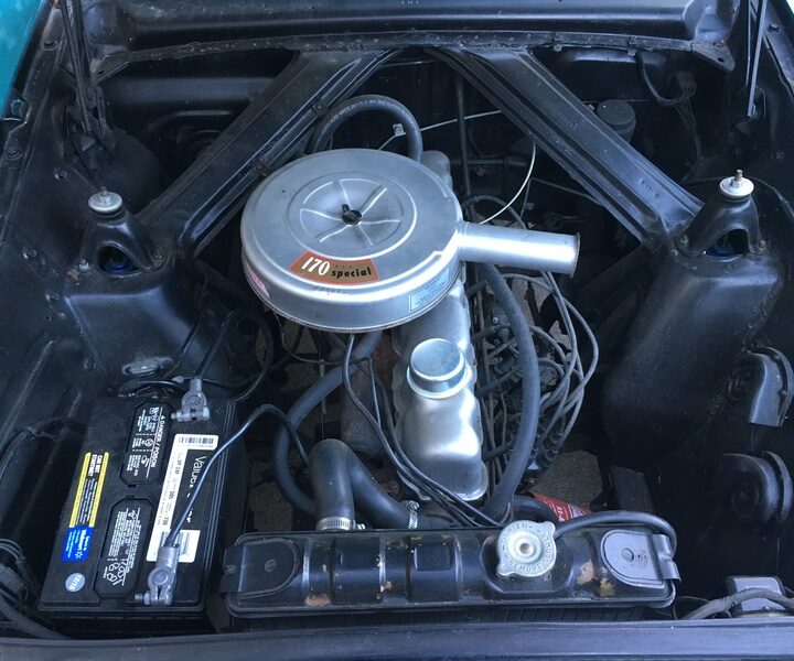 The blue body and white top were painted several years ago and the patina remains very presentable. There are new white front and rear seats and new looking carpet. The headliner needs minor repair around the rear window and the arm rest on the driver’s side door panel needs repair from wear. All other interior components are in good condition. This nice classic Mercury has no rust bubbles under the paint, and nothing other than very minor surface rust is evident. Everything is solid, including the trunk, doors, rocker panels and fenders.