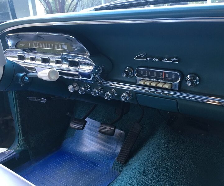 This classic 1962 Mercury Comet is in very good condition. The equipment includes a 170 C. I. six cylinder engine and 3 speed manual transmission. Both run and shift well. No power steering or power brakes, but on a car that weighs as little as this one, you really don’t need it.
