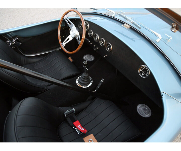 The powertrain is a correct 289 C. I. block, bored and stroked to 347 C. I. with electronic “8 stack” fuel injection that resembles the original Weber carburetors, and mated with a five speed Tremec transmission. Differential is a 3:73 to 1 posi-trac Salisbury with independent rear suspension. It is dialed in, tuned and tested, and ready for a new owner.
