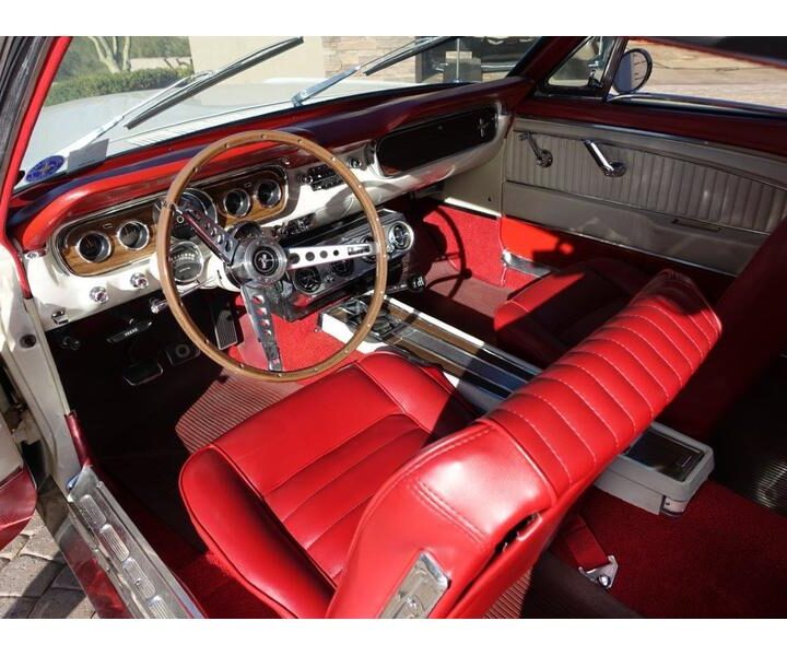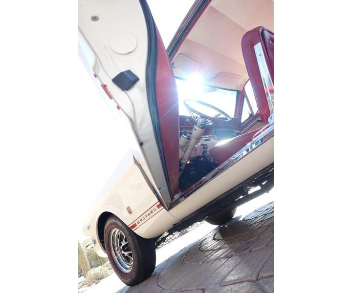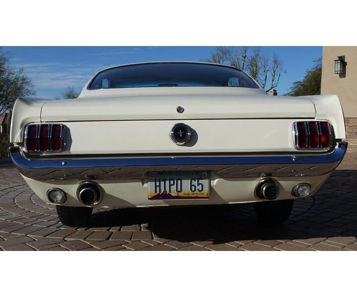 This beautiful ’65 Mustang “K” code fastback is highly optioned and ready for a new owner. Painted factory correct Wimbledon White with red GT rocker stripes, this is one of the most desirable Mustangs ever built. It is the same body style and power train used in the 1965 Shelby GT350, and for a lot less money. The HiPo, solid lifter 289 cubic inch engines is in excellent condition and is mated with a Borg Warner T10 four speed transmission, also in perfect mechanical condition. All components are original to the car. Options include front disc brakes, factory air conditioning, deluxe “pony” interior, GT option package, and “rally pack” (tachometer and clock attached to the steering column.) All sheet metal is original and there is no structural rust anywhere. These early K code Mustangs are very rare and only come on the market occasionally. This one is a beautiful example, and is located in Phoenix, Arizona.