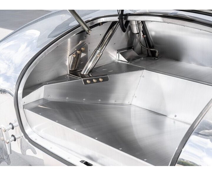CSX4935 is a text book example of what an aluminum cobra can be. A Shelby CSX4000 ordered in aluminum body with a polished finish. But what is a Cobra without stripes? So, CSX4935 was finished with brushed stripes offering the aesthetic we have come to expect with a 427 S/C Cobra with a stunning concourse ready finish.