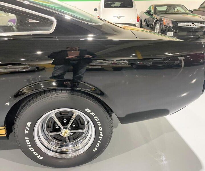 The exterior black paint and gold Le Mans stripes are in very good condition – no dents or dings. The bright trim is very good, showing only very minor pitting in places. Inside, the upholstery is in good shape, no rips or tears or seam separations and the headliner is in excellent condition. The instrument panel is clean and all the lights and gauges work.