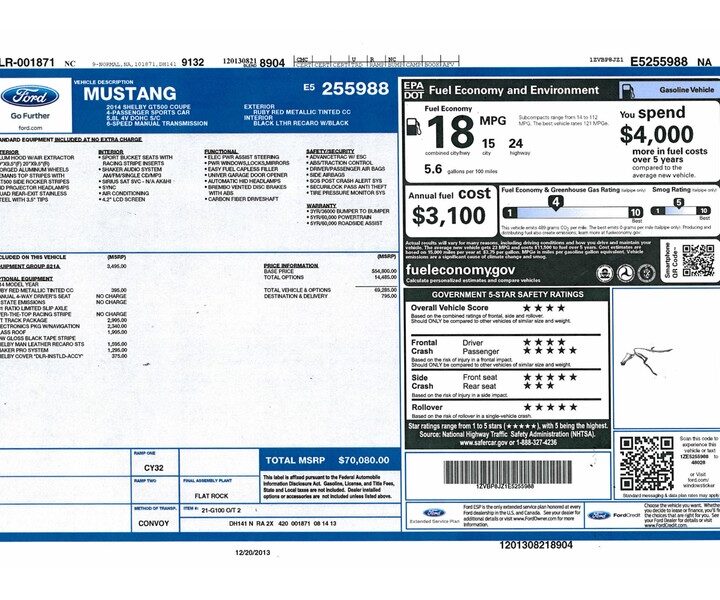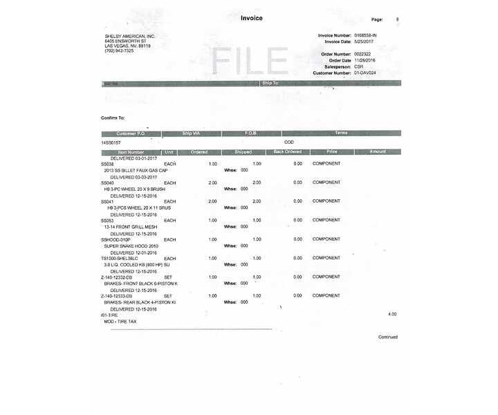 Like all late model Super Snakes, this one is loaded with Shelby options. A majority of the original Ford performance parts have been upgraded to Shelby standards, including interior, exterior, engine compartment and undercarriage components. Included with the pictures, you’ll find copies of the window sticker and original Shelby invoice detailing the Shelby components installed.