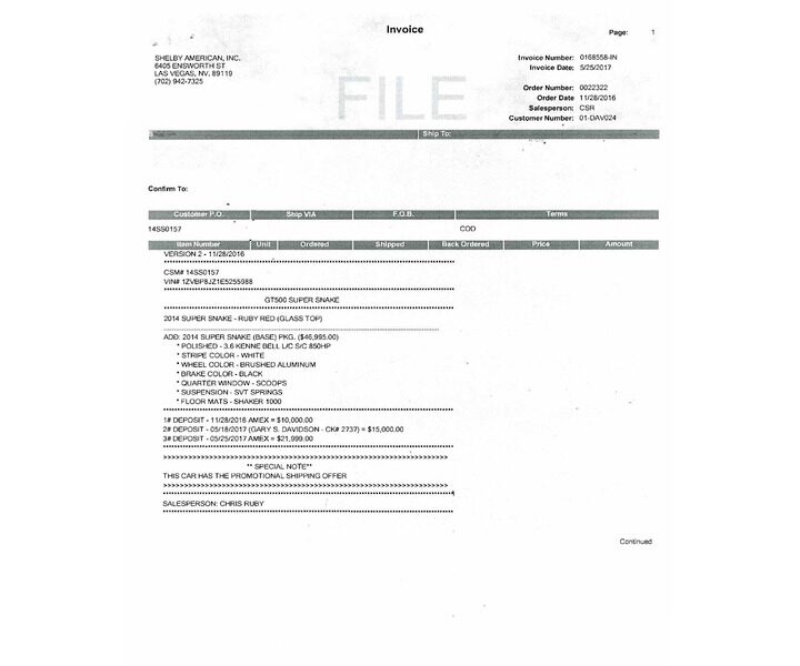 The GT500 was purchased new by the current owner in December of 2014. The Super Snake package was installed by Shelby American Inc. and completed in May of 2017. As of this writing, there are 975 miles showing on the odometer.*