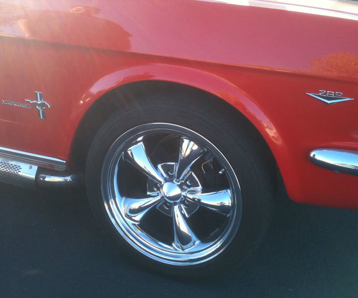 Fresh Viper Red paint, power steering, automatic transmission, disc brakes, upgraded engine, custom wheels and tires, and side exit exhausts make this modified classic Mustang stand out. Nicely detailed engine compartment, clean interior and exterior. This car is located in Las Vegas.