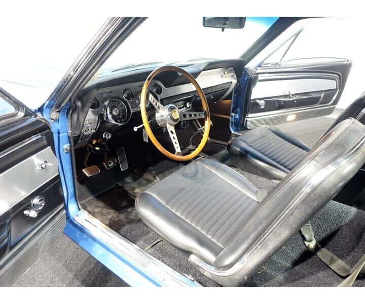 The options on this immaculate 1967 Shelby GT350 include power steering, power disc brakes, and show quality Acapulco Blue paint with black deluxe interior. The engine and transmission were professionally rebuilt, and are date code correct. The differential is also correct and features the only modification from the original – rear disc brakes.